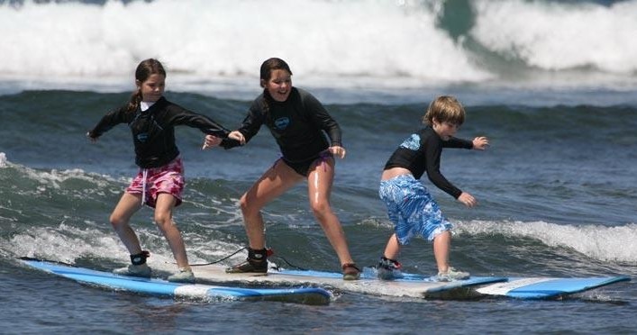 Beginner group lessons are available to virtually everyone, and there are very few limitations when considering the age (must be 9 yrs of age or older to join a Group Lesson, otherwise Private lessons are required), weight, height, or swimming ability of the potential surfing student. Prior ocean experience is not necessary. Group classes are small in size, no more then 5 students per Instructor.. Guaranteed!